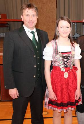 Dies wurde auch beim Schießen um die Würde des neuen Bezirksjugendkönigs unter Leitung von 3.Bez.schützenmeister Mathias Dörrie, deutlich. Unter den zum Königsschießen angetretenen 6 Jugendkönigen der Schützengaue, standen 2 Jungen 4 Mädchen gegenüber. Neue Bezirksjugendkönigin wurde mit einem 25, 4 Teiler Regina Merkert, SV Gelchsheim, SG Würzburg. (Foto3: 3.BSM Dörrie, Bez.Jugendkönigin)