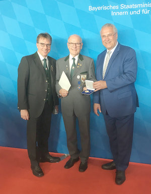 Mit der "Ehrenmedaille für besondere Verdienste um den Sport in Bayern" wurde der 1. Gauschützenmeister des Schützengaues Main-Spessart Reinhold Köppel durch Staatsminister Joachim Herrmann ausgezeichnet.