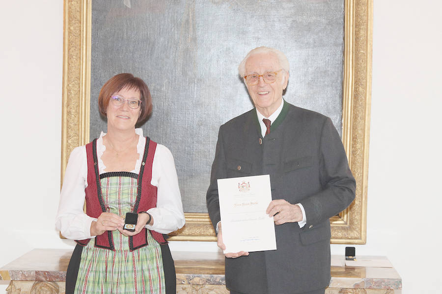 Für ihr jahrzehntelanges ehrenamtliches Engagement um und für das unterfränkische Schützenwesen wurde unserer 1. Bezirksschriftführerin Vera Nätscher durch S.K.H. Herzog Franz von Bayern das „goldene Protektorabzeichen“ verliehen.