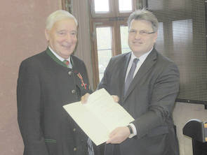 Siegfried Schmitt wird das Bundesverdienstkreuz am Bande verliehen