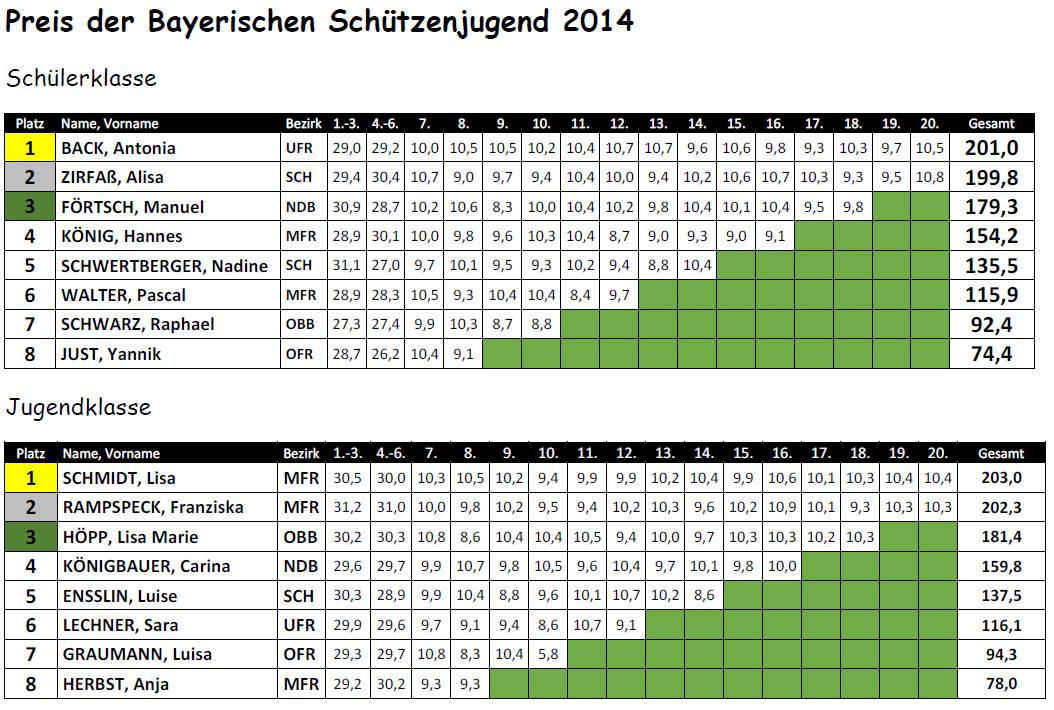 Nach Abschluss des Landesjugendpokals durften die jeweils besten Schüler und Jugendschützen aus den teilnehmenden Bezirksmannschaften am Finale um den Preis der Bayerischen Schützenjugend 2014 teilnehmen
