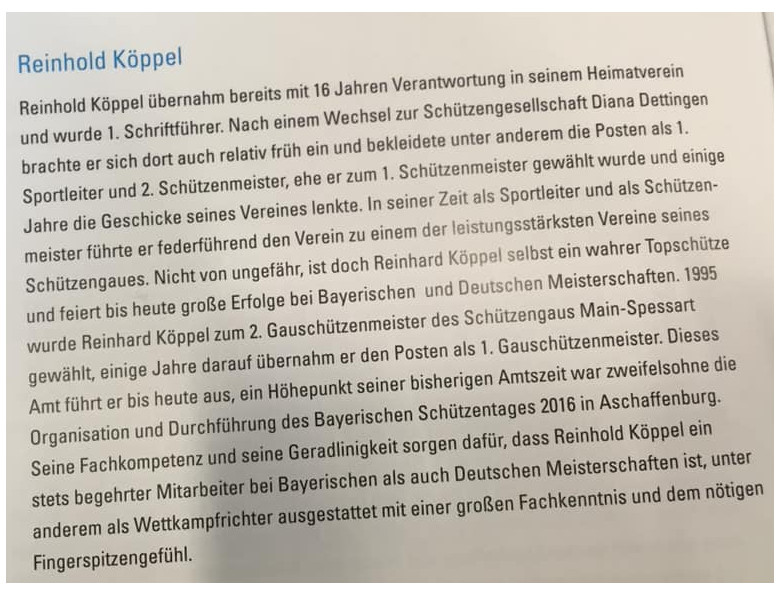 Für sein beachtliches Engagement um den unterfränkischen Schießsport bedankt sich auch der Schützenbezirk Unterfranken und gratuliert dem 1. Gauschützenmeister Reinhold Köppel ganz herzlich zu dieser ganz besondere Auszeichnung, die er sich redlich verdient hat.