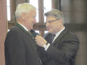 Siegfried Schmitt wird das Bundesverdienstkreuz am Bande verliehen