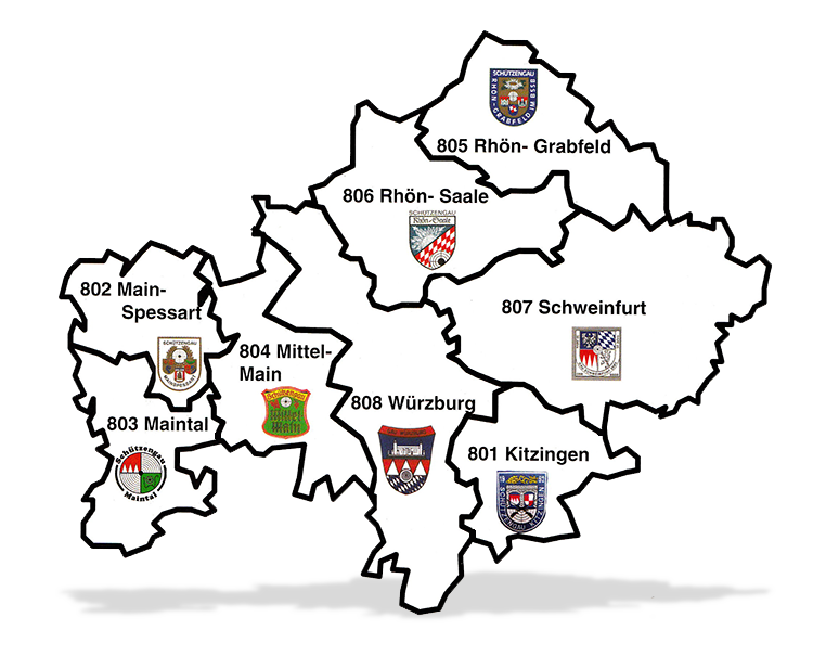 Der Schützenbezirk Unterfranken, nahezu deckungsgleich mit dem Regierungsbezirk Unterfranken, ist gegliedert in 8 Schützengaue mit 309 Schützenvereinen und Schützengesellschaften und knapp über 32.000 Mitgliedern. Er gehört zu den 8 Schützenbezirken im Bayerischen Sportschützenbund (BSSB) und nimmt in der Mitgliederstatistik des BSSB, der fast 470 000 Mitglieder umfasst z. Zt. Platz 6 ein.